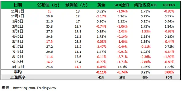 下图为过去12次非农数据以及当日市场表现,仅供参考。