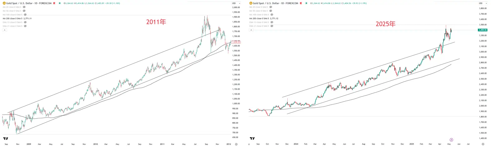 黄金走势2011 vs 2025?? 来源:Tradingview
