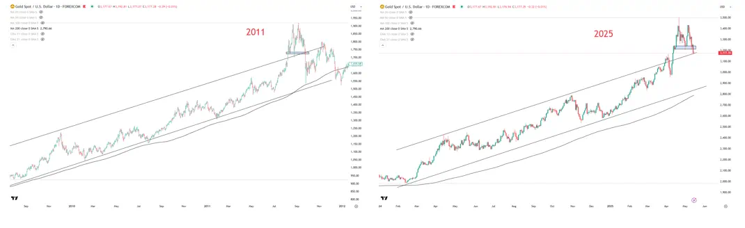 黄金2011年vs 2025年 来源:TradingView